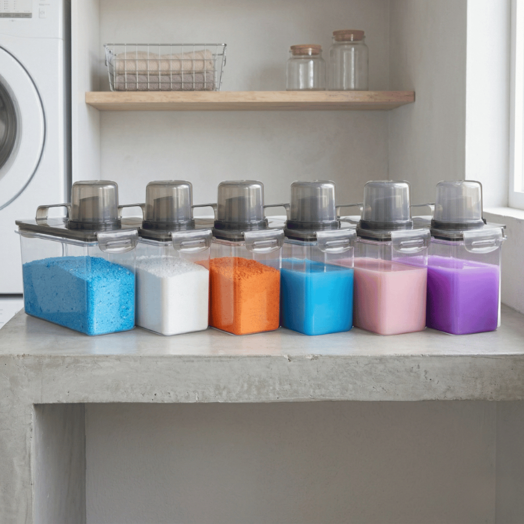 Kit 6 Potes Hermético para Lavanderia Sabão Amaciante 1,9L Dispenser Organizadores c/ Bico Dosador