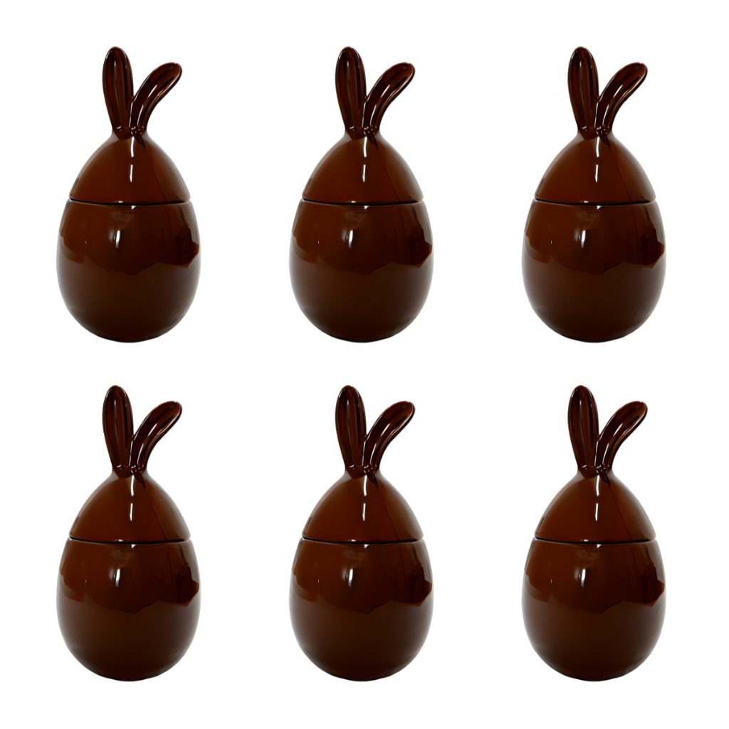 Kit 6 Potes Ovo de Páscoa Com Orelhas Cerâmica Segunda Linha Chocolate Mesa Posta 580ml