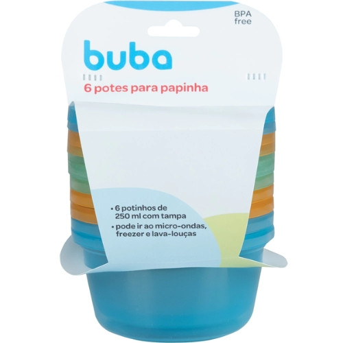 Os Potinhos De Papinha De Bebê Kit Com 6 Unidades Buba 250ml são excelentes para as mamães e papais que procuram praticidade, deixando as papinhas de seus bebês prontas e fresquinhas. Os potes tem cores brilhantes e são translúcidos de forma que permite ver o conteúdo interior. Feitos de polipropileno de qualidade, totalmente livre de bpa e ftalatos, garante qualidade e resistência, seu formato permite que sejam empilhados para uma melhor organização, e podem ser levados ao micro-ondas, freezer e à lava-louças. O kit de potinhos acompanha tampa, proporcionando segurança ao ser transportado, ideal para viagens e passeios. Contém: 6 potes (250 ml) e 6 tampas Composição: 100% Polipropileno (pp) Produto livre de bpa e ftalatos Pode ir no micro-ondas, freezer e lava-louças.