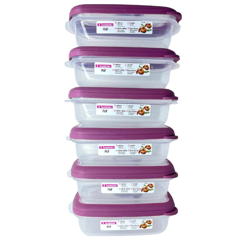 Kit 6 Potes Plástico Empilhaveis com Válvula Micro Ondas Retangular Roxo