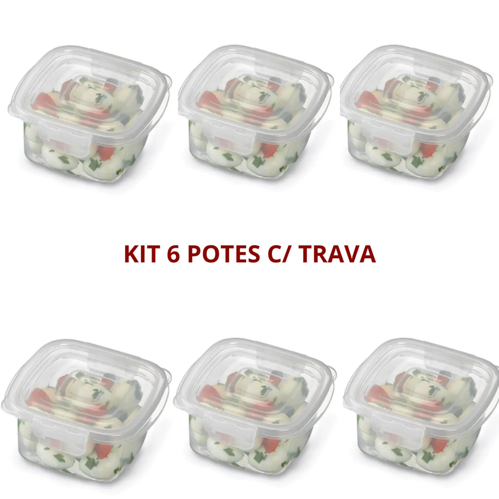 Kit 6 Potes Quadrado Com Travas 370ml Freezer Microondas