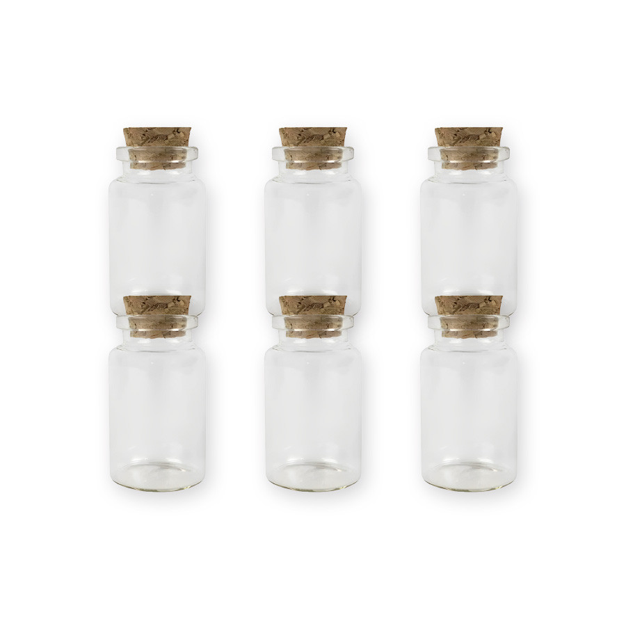 Kit 6 Potinhos de Vidro Hermético para Lembrancinha com Tampa de Rolha - 20ml - Rizzo