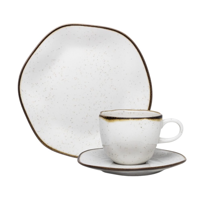 SOBRE O PRODUTO A coleção Ryo Maresia traz uma composição que valoriza a beleza das praias, o toque da areia e o frescor do mar. Todas as peças da coleção Ryo Maresia recebem aplicação de esmalte com pigmentação e de um filete reagente aplicado de forma manual garantindo a unicidade de cada peça. Produzido em porcelana, o conjunto de lanche Ryo Maresia é composto por 6 pratos sobremesa e 6 xícaras de chá com pires que podem ser levados ao micro-ondas e à máquina de lavar louças. Conteúdo da embalagem: 6 pratos sobremesa com 21,5 cm de diâmetro 6 Xícaras de Chá com Pires 220ml ESPECIFICAÇÕES Uso: Resistente a micro-ondas, Resistente a lava-louças Tipo: Prato Sobremesa Material: Porcelana Tipo de Embalagem: Papel Pardo Cor: Branco, Marrom