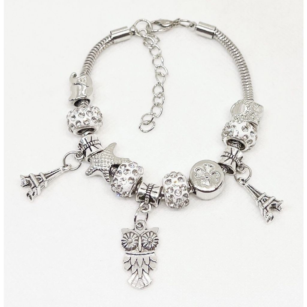 KIT 6 Pulseira Berloques Prateada, Rose e Dourada Estilo Feminina (Modelo aleatório)
