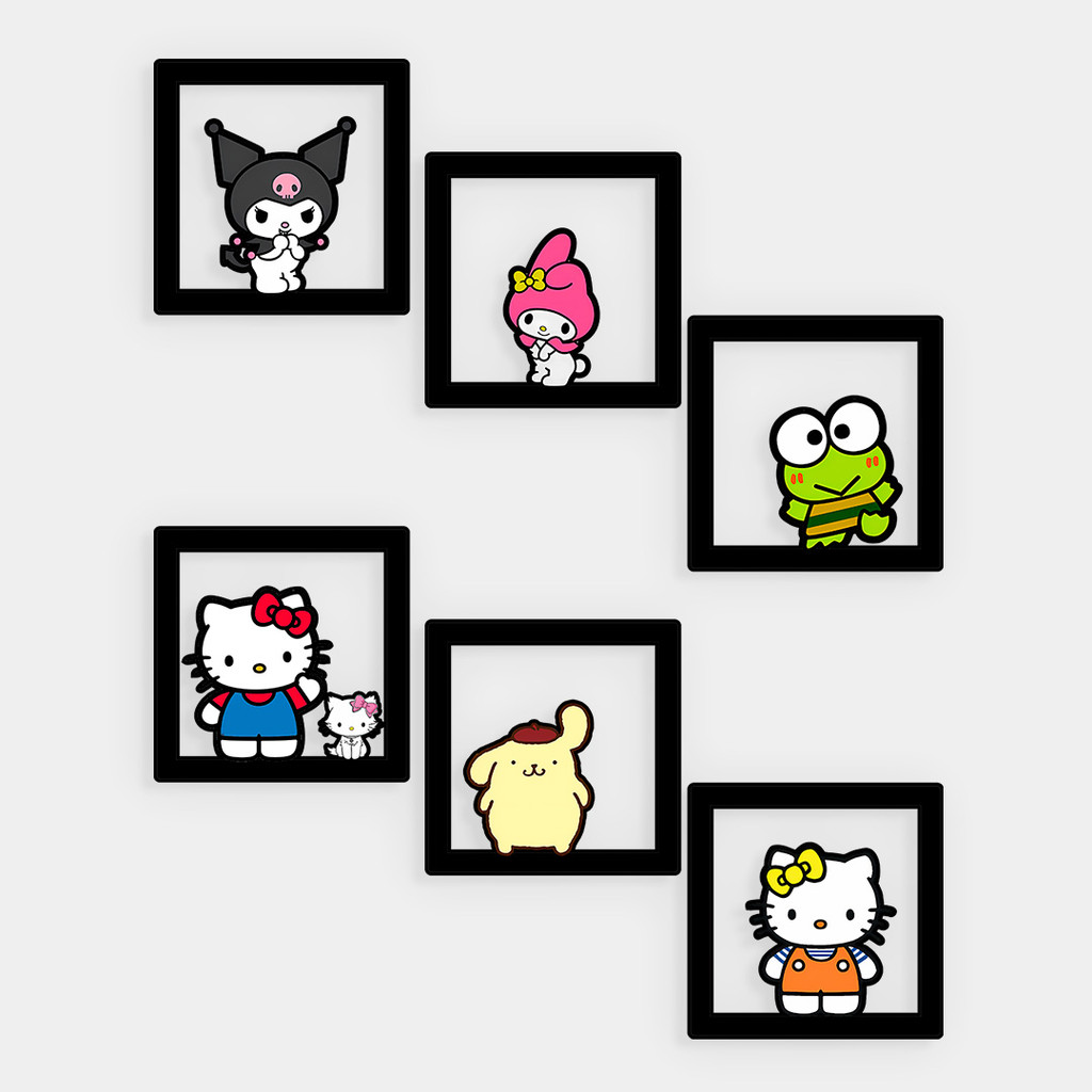 Kit 6 Quadros Hello Kitty e amigos Sanrio MDF Vazado 14x14cm