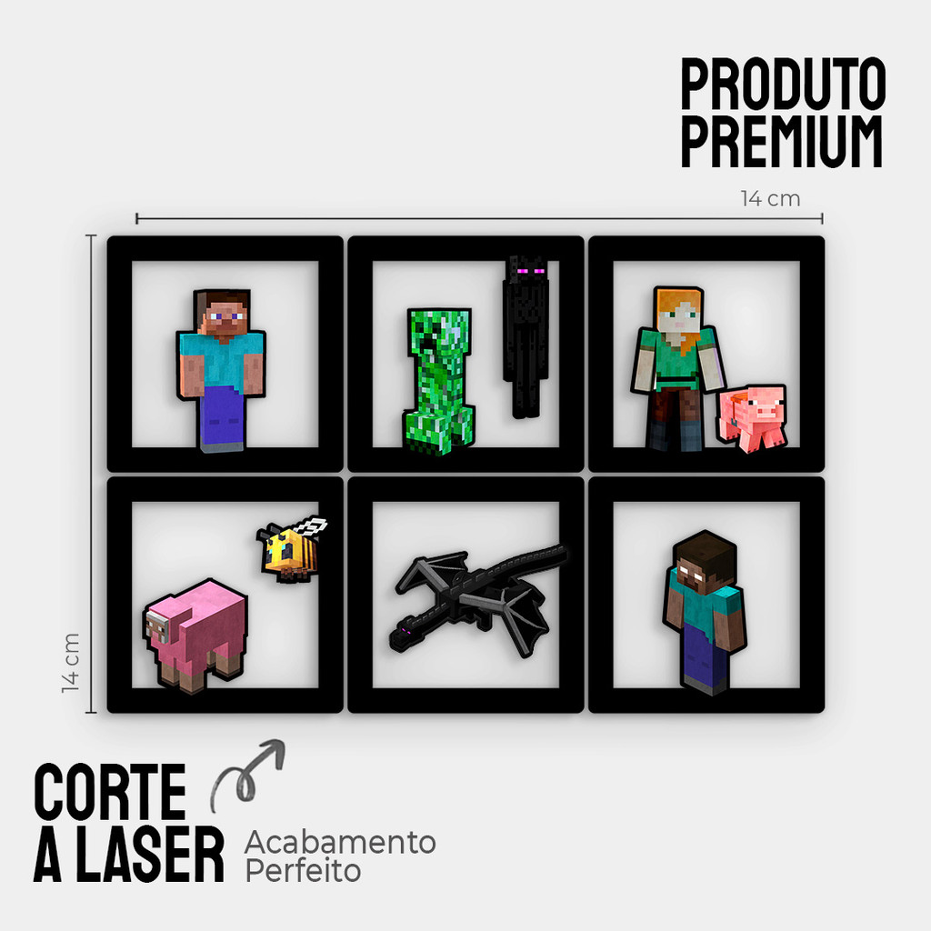 Kit 6 Quadros Mine Pixel MDF Vazado 14x14cm