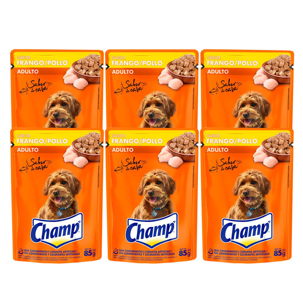 Kit 6 Ração Úmida Champ Adulto sabor Frango Sachê 85g