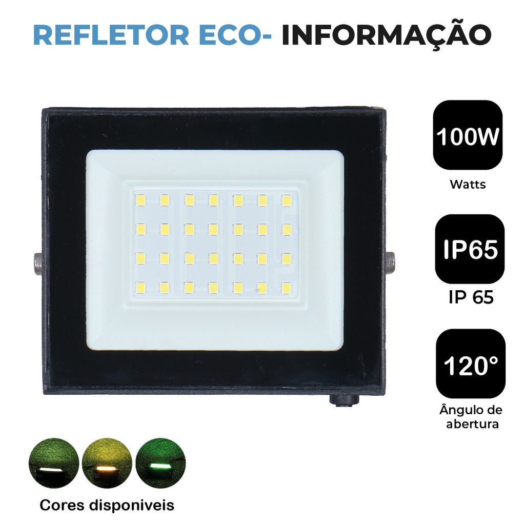 Kit 6 Refletor Led ECO 100W Branco Frio | Branco Quente | Verde IP65 Luz Econômica Bivolt 110-220V