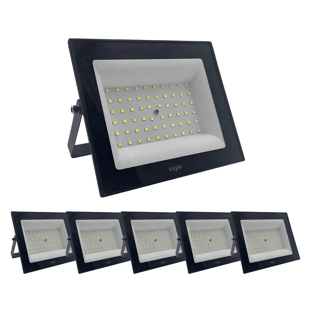 Kit 6 Refletores Led Elgin 100w Branco Frio 6500K Bivolt Econômico