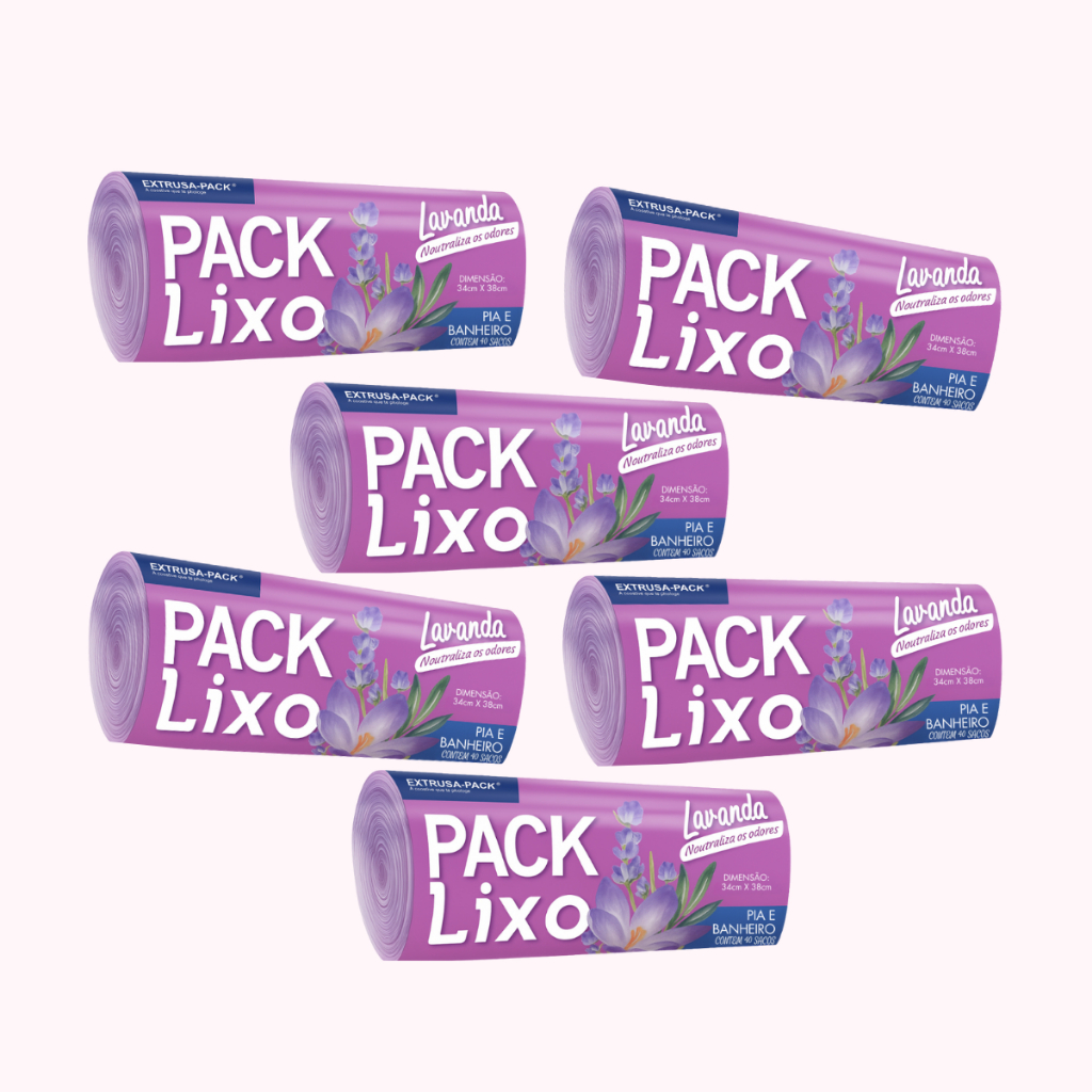 Kit 6 Rolos Lavanda Pia 240 Sacos Perfumado Antiodor Lixeira Banheiro Cozinha Reciclável