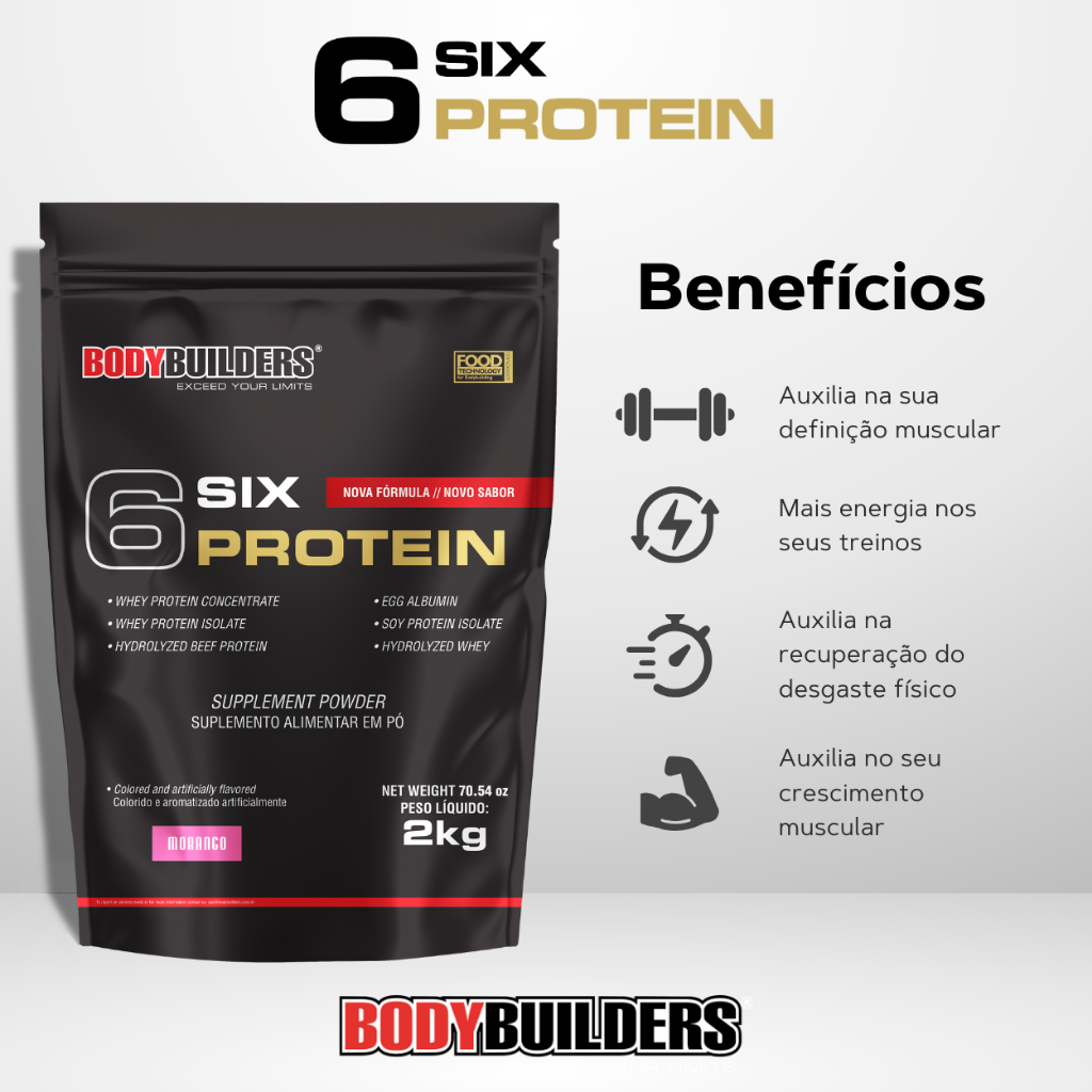 Kit 6 Six Protein 2kg + Power Creatina 100g + Power Glutamina 100g - Bodybuilders