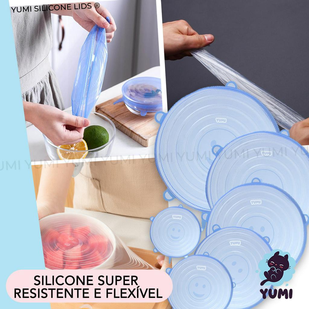 Kit 6 Tampas Panela Silicone Universal Reutilizável Elástica Tampas Silicone Cozinha Geladeira
