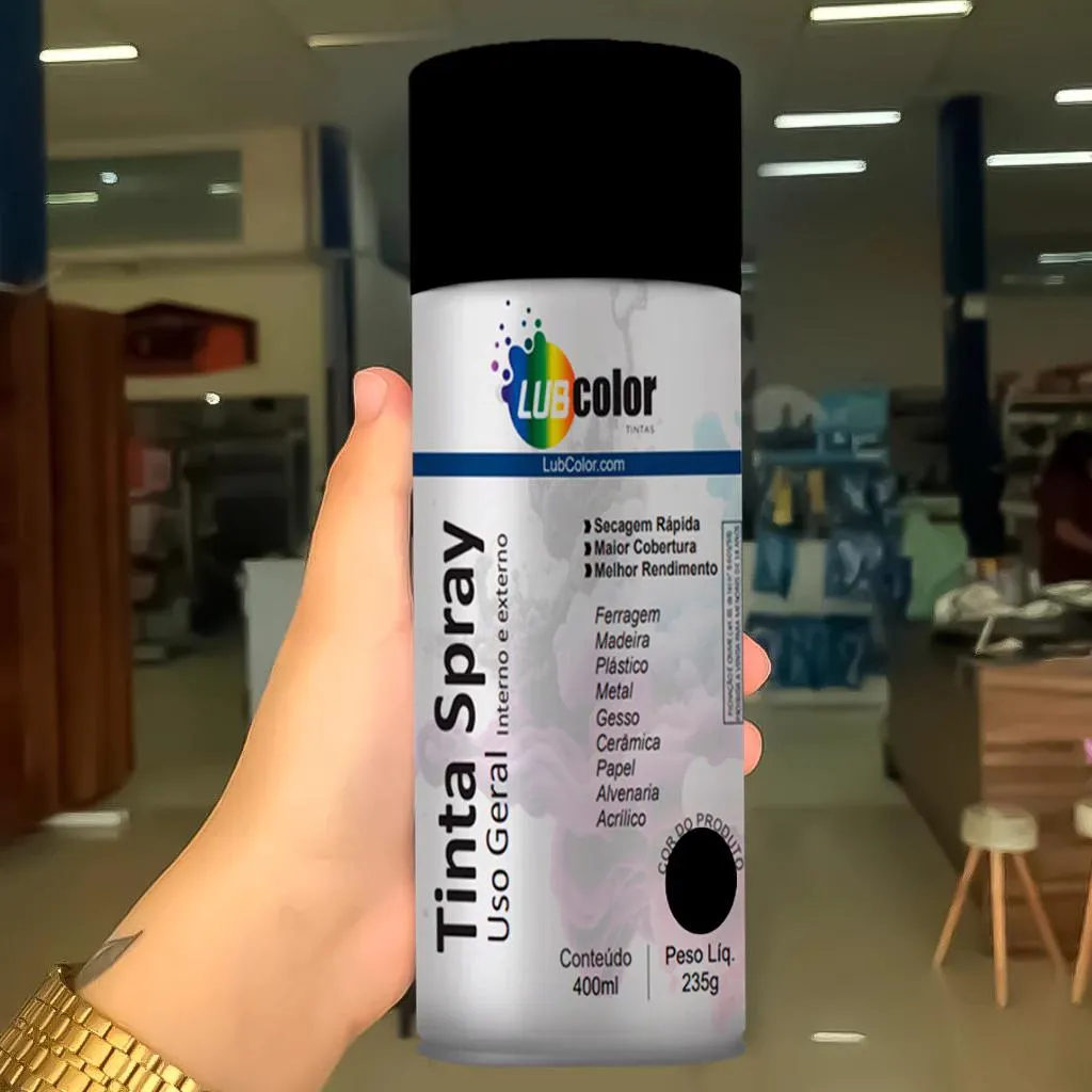 COMERCIAL VIPASA DISTRIBUIDORA. Kit 6 Tinta Spray Uso Geral LUBCOLOR Uso Interno/Externo Secagem Rápida 400mL/250g Multiuso Geral INSTRUÇÕES DE USO: AGITE BEM ANTES DE CADA APLICAÇÃO. PREPARO DA SUPERFÍCIE Deve-se limpar bem e lixar (se necessário) qualquer superfície a ser pintada, pois deverá estar seca e completamente livre de gordura, ferrugem, restos de pintura velha, pó, resina, etc. Proteja a parte que não será pintada. Superfície previamente pintada: remova toda pintura velha com Removedor de Tintas ou lixa. APLICAÇÃO Agite bem a lata antes usar, faça um pequeno teste do aplicador, pressionado a válvula algumas vezes em qualquer superfície, verificando o formato do jato. Pulverize a uma distância de 10 cm do local, utilizando-se de movimentos uniformes cobrindo a área desejada. SECAGEM 15 minutos ao toque, 1 hora para manuseio e 24 horas para teste de resistência. DESCRIÇÃO GERAL DO PRODUTO: A tinta spray de uso geral Lubcolor é um produto versátil que pode ser utilizado para uma variedade de aplicações em ambientes internos e externos. Pintura de Superfícies: A tinta spray pode ser usada para pintar uma variedade de superfícies, como metal, madeira, plástico, papelão, gesso, cerâmica, entre outros. Ela proporciona uma cobertura uniforme e durável. Renovação e Customização: É útil para renovar ou customizar objetos e superfícies, como móveis, acessórios domésticos, artesanatos, bicicletas, brinquedos e muito mais. Com uma variedade de cores disponíveis, você pode dar vida nova a itens antigos ou personalizá-los de acordo com sua preferência. Reparos e Manutenção: Pode ser utilizada para reparar áreas danificadas ou desgastadas em superfícies metálicas, como portões, grades, ferramentas e equipamentos. Também é útil para cobrir imperfeições em superfícies de madeira e plástico. Uso Interno e Externo: A tinta spray Lubcolor é formulada para resistir aos elementos externos, como luz solar, chuva e umidade, tornando-a adequada para uso tanto em ambientes internos quanto externos. Ela proporciona uma camada protetora que ajuda a evitar corrosão, desbotamento e danos causados pelo tempo. Secagem Rápida: Sua fórmula de secagem rápida permite que você conclua projetos de pintura de forma mais eficiente, reduzindo o tempo de espera entre as demãos e garantindo um acabamento suave e uniforme em menos tempo. Fácil Aplicação: A tinta spray é de fácil aplicação, permitindo cobrir grandes áreas de forma rápida e uniforme. Além disso, proporciona uma cobertura resistente a manchas e arranhões. A tinta spray de uso geral Lubcolor é uma ferramenta versátil e conveniente para projetos de pintura em casa, hobby ou uso profissional. Sua capacidade de proporcionar uma cobertura durável, secagem rápida e resistência tanto em ambientes internos quanto externos a torna uma escolha popular para uma variedade de aplicações. COMERCIAL VIPASA DISTRIBUIDORA.
