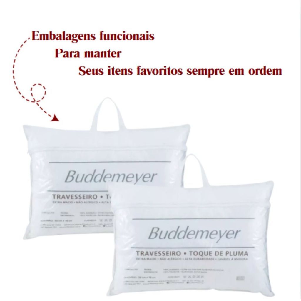 O "Kit 6 Travesseiros Toque de Pluma Buddemeyer" é um conjunto de travesseiros de alta qualidade, ideal para quem busca conforto e suavidade para uma boa noite de sono. Os travesseiros são preenchidos com microfibra, que simula a sensação de pluma, oferecendo uma sensação de maciez e aconchego. O tecido de revestimento é feito de algodão, proporcionando maior respirabilidade e conforto. Além disso, o formato e o enchimento dos travesseiros foram cuidadosamente planejados para oferecer o suporte adequado para diferentes posições de dormir. A marca Buddemeyer é reconhecida pela excelência em seus produtos de cama, e esse kit não é diferente, sendo uma opção prática e de alta qualidade para quem deseja investir em descanso de qualidade. Tamanho: 50x70 SKU: 178862
