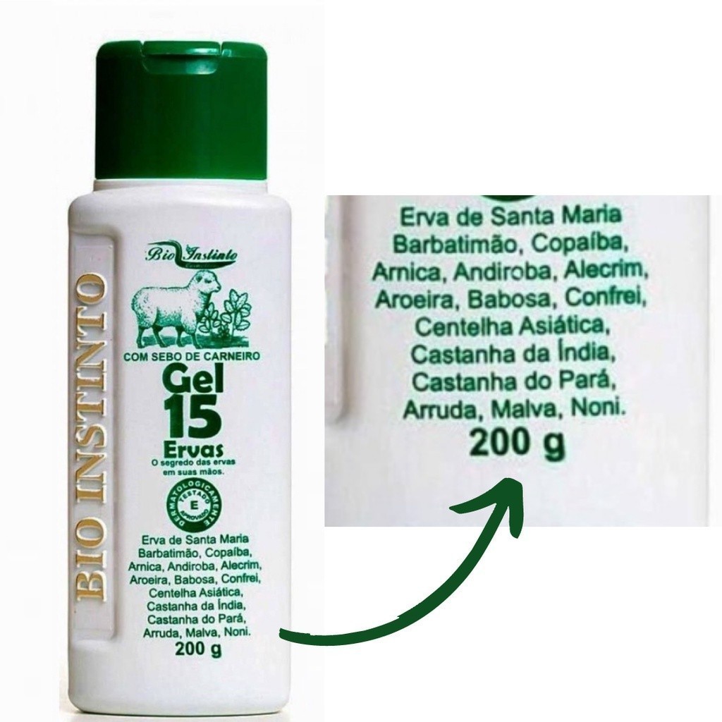 | Kit 6 Un Gel 15 Ervas com Sebo de Carneiro 200g Bio Instinto este produto | R$ 28,99 | — | 4.7/5 | 4 |