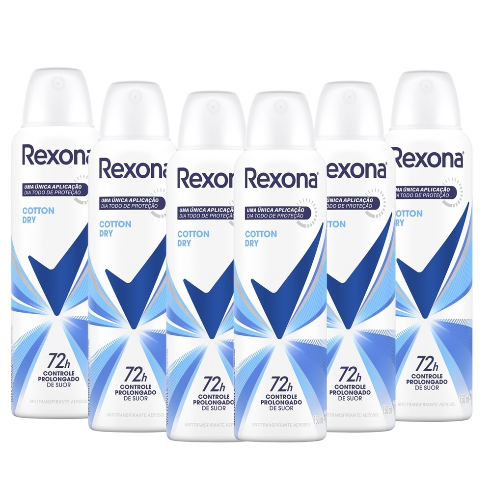 | Kit 6 und Desod Aero Rexona Feminino Cotton Dry 150ml este produto | R$ 113,99 | 12% | 5.0/5 | — |