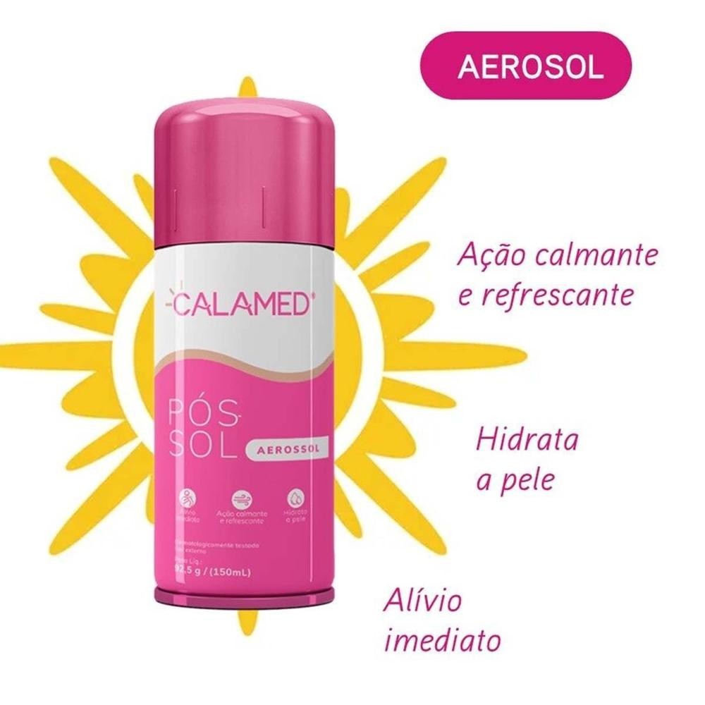 Kit 6 Unidades Calamed Aerossol 150 ml O Calamed Aerosol é um pós-sol que promove o alívio imediato de dores e desconfortos causados por queimaduras solares. A aplicação pode ser feita tanto no rosto quanto no corpo. Recomendado para crianças a partir de 3 anos de idade. Modo de Uso: Mantenha a uma distância de 15cm do local de aplicação. Lavar a pele com água e sabão. Secar bem antes de cada aplicação. Aplicar na região afetada 3 ou 4 vezes ao dia. Em seguida, massagear a área até que o produto penetre completamente. Aguarde o produto secar bem antes de colocar a roupa. Composição: Propylene glycol, talc (zinc oxide, CI 77491, CI 77492)*, Alcohol, stearalkonium bentonite, camphor, phenoxyethanol, parfum, cinnamyl alcohol, citronellol, hydroxycitronellal, linalool, coumarin, eugenol, isoeugenol, propane, butane, isobutane. Calamina rosada.