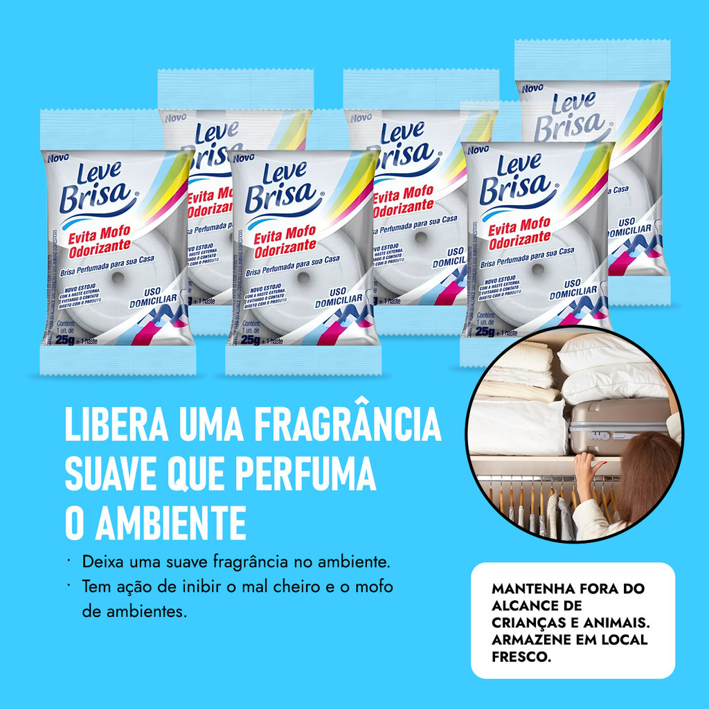 Pedra Evita Mofo 25g – Cartela com 6 Unidades Diga adeus ao mofo e ao mau cheiro nos seus ambientes! A Pedra Evita Mofo é a solução prática e eficiente para armários, guarda-roupas, gavetas, closets e até pequenos ambientes que sofrem com umidade. Com fórmula especial, cada pedra absorve a umidade do ar, prevenindo mofo, fungos e odores desagradáveis. Além disso, libera uma fragrância suave e agradável, deixando o ambiente sempre fresco e protegido. ✅ Vantagens e Benefícios Combate o mofo, fungos e o mau cheiro. Atua como desumidificador, absorvendo a umidade do ar. Perfuma suavemente, mantendo o ambiente cheiroso. Prático e fácil de usar em diversos locais. Ideal para gavetas, guarda-roupas, closets e armários. Cada pedra tem 25g e oferece alta durabilidade. 📦 Conteúdo da Embalagem: 01 cartela com 6 pedras Evita Mofo de 25g cada 👉 Mantenha seus ambientes livres de umidade, sempre frescos e agradáveis com a Pedra Evita Mofo ❓ Perguntas Frequentes (FAQ) 1. Quanto tempo dura cada Pedra Evita Mofo? ➡️ Em média, cada pedra dura de 30 a 45 dias, dependendo da umidade do ambiente. 2. Onde posso usar a Pedra Evita Mofo? ➡️ Pode ser utilizada em gavetas, armários, guarda-roupas, closets, sapateiras, banheiros pequenos e outros locais sujeitos à umidade. 3. A Pedra Evita Mofo realmente absorve a umidade? ➡️ Sim! Ela funciona como um desumidificador natural, absorvendo a umidade do ar e prevenindo mofo, fungos e mau cheiro. 4. O produto deixa cheiro forte? ➡️ Não. Ele libera uma fragrância suave e agradável, deixando o ambiente fresco sem ser enjoativo. 5. Como usar corretamente a Pedra Evita Mofo? ➡️ Basta retirar da embalagem e colocar no local desejado. Não precisa abrir ou misturar com nada, é prático e imediato. 6. O que vem na embalagem? ➡️ Cada cartela contém 6 pedras de 25g cada, embaladas individualmente para manter a eficácia.