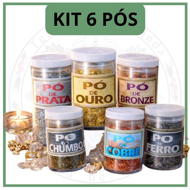 Kit 6 Unidades Pó de Ouro, Pó de Prata, Pó de Bronze, Pó de Chumbo, Pó de Cobre, Pó de Ferro c/ 15g