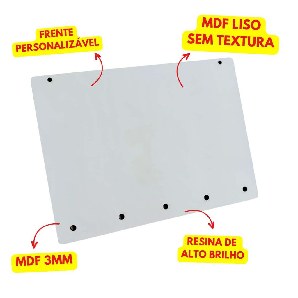 Porta Chaves mdf 3mm 1 face branco alto brilho com 5 pinos de metal para sublimação - Loja da Sublimação – - Mdf Alto Brilho *SEM TEXTURA* - Kit c/ 6unidades Porta chaves mdf 3mm sublimático - Acompanha os 5 pinos para encaixe (enviado junto com porta chaves para serem encaixados após a personalização da peça) - DIMENSÕES 15CM X 20CM (alt x larg). - Material: MDF 3mm 1 face branco sublimático e pinos de encaixe em metal - Porta chaves em MDF branco resinado acabamento alto brilho O porta chaves resinado para sublimação é uma peça coringa para qualquer empresa que trabalha com produtos para sublimação. Ideal para brinde corporativo, decoração de interiores, presentes personalizados, kit de produto personalizado, lembranças de chá de panela, lembrança de aniversário, lembrança de bodas, etc. Personalização do Porta chaves sublimático: Tempo: 35 Segundos Temperatura: 195cº Pressão média **Importante** Cada equipamento possui uma calibragem diferente, por isso é sempre importante fazer testes para definir a melhor configuração para seu processo. Queremos que você tenha mais tempo para ganhar dinheiro, atender e dar atenção aos seus clientes e não perdendo tempo criando gabaritos, então já fizemos esse trabalho para você. Junto com seu pedido, você receberá um link de acesso a todos os gabaritos de nossos produtos. Muito mais prático para você, tenha assim mais tempo para atender e vender aos seus clientes! Todos os nossos produtos passam por conferência antes do envio, a fim de garantirmos a integridade e qualidade do produto até chegar em suas mãos! Conheça esse produto e encante seus clientes!