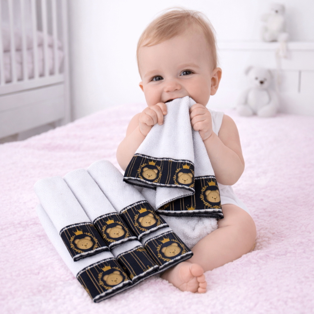 Kit 6 unidades Toalha de Ombro Babete Pano de Boca Paninho Tecido Estampado 100% Algodão Felpudo
