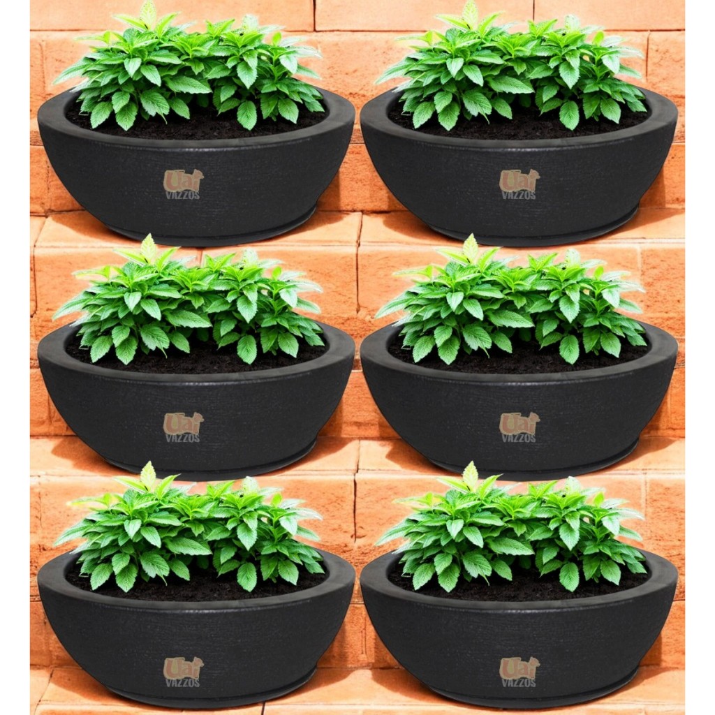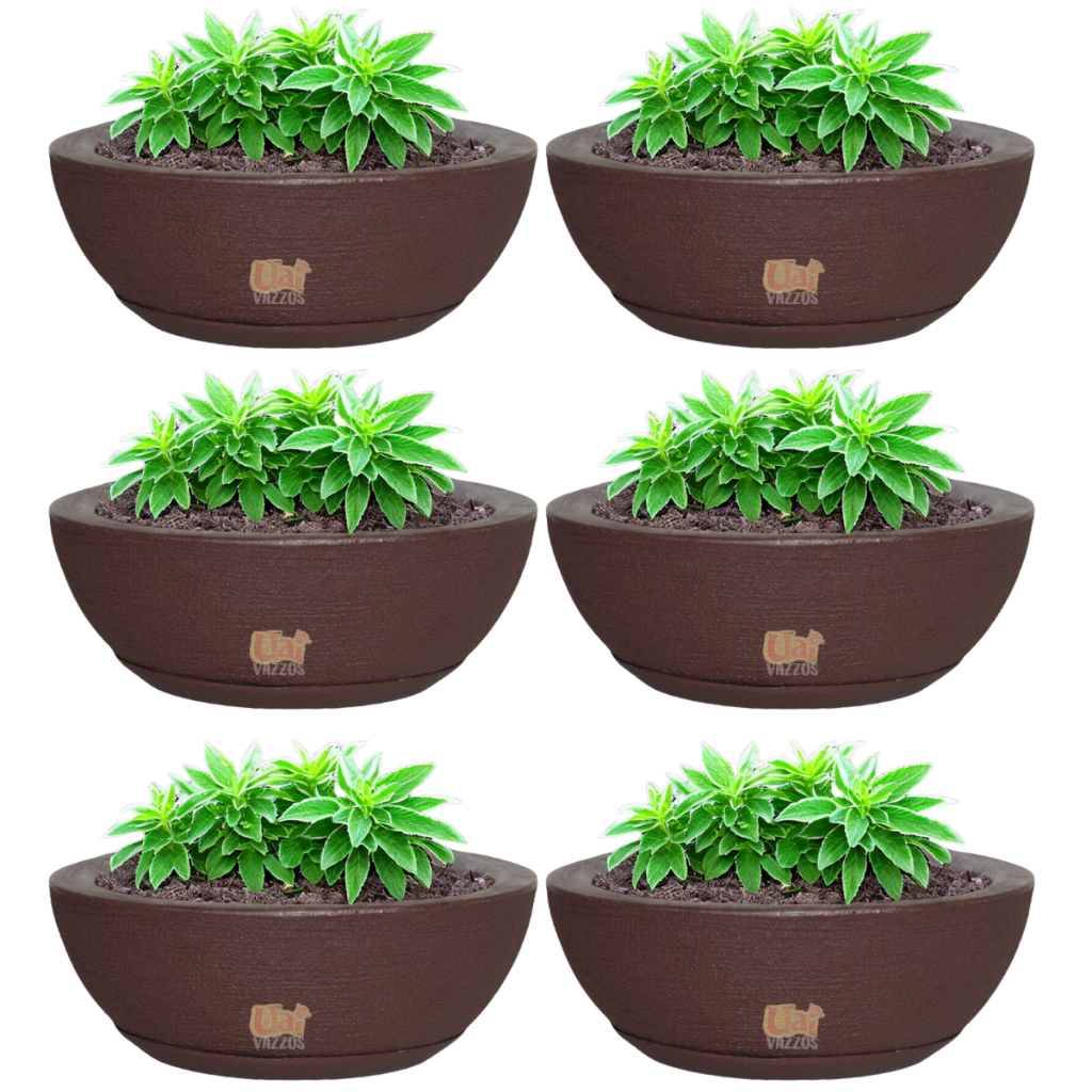 Kit 6 Vasos Bacia Cuia Suculenta Para Plantas ou Flores Polietileno Nº2 Com Pratos Coletores