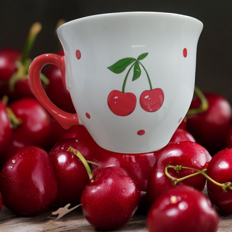 kit 6 xícara de Chá 🍒 cereja pintada à mão produto diferenciado# moda 🍒