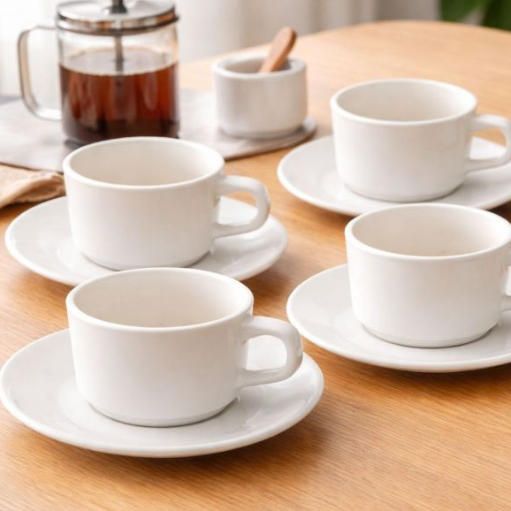 Descubra a elegancia e praticidade do Conjunto de Xícaras Café com Pires em Melamine que e um plástico resistente Branco da marca Tuut. Composto por xícaras médias ideais para cafés expresso longo ou duplo, capuccino, chocolate quente, chas, entre outras bebidas. Fabricadas em melamina, essas xícaras são leves e resistentes, tornando-se uma excelente opção para uso diário. Além disso, sao aptas para micro-ondas e lava-loucas, facilitando a sua rotina na cozinha. O design redondo e a cor branca conferem um toque de sofisticação a qualquer mesa. Este conjunto é ideal para quem aprecia um bom café e busca praticidade sem abrir mao do estilo. Aproveite a oportunidade de transformar seus momentos de café em experiencias ainda mais agradáveis com este conjunto funcional e elegante. O kit acompanha 6 unidades de xícaras e de pires, produto novo, envio imediato.