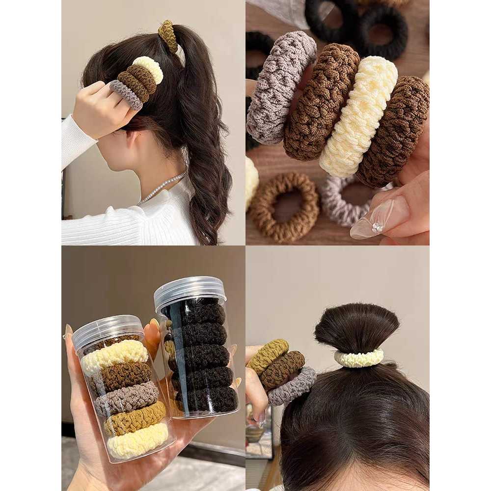 Kit 6 Xuxinhas de Cabelo Coloridas em Pote | Elástico Macio Sem Quebrar Fios | Acessórios Femininos Cores Sólidas