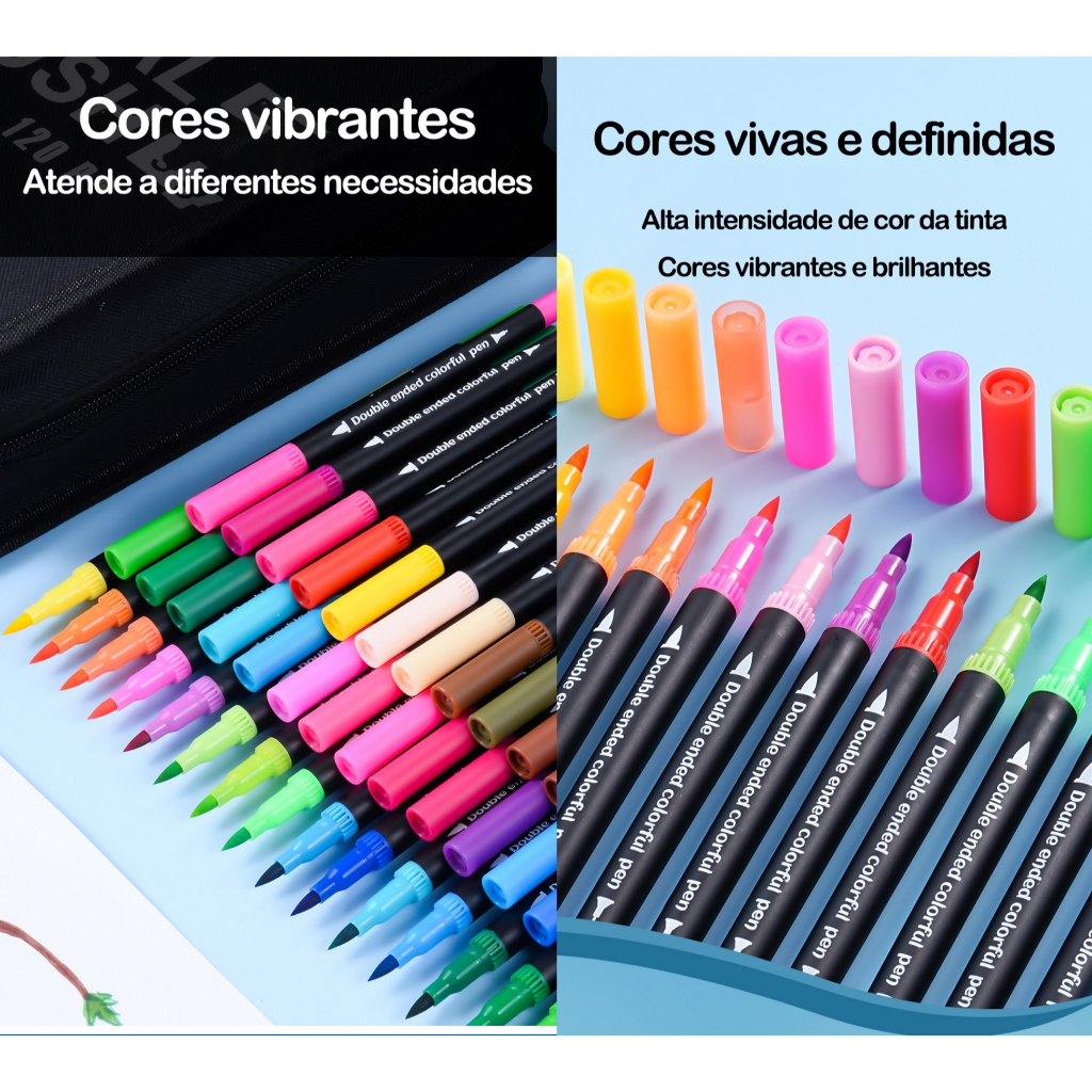 Kit 60/80/100/120 Cores Caneta 2 em1 Brush Lettering e Ponta Fina Dual Pen Canetinha Colorir Desenho