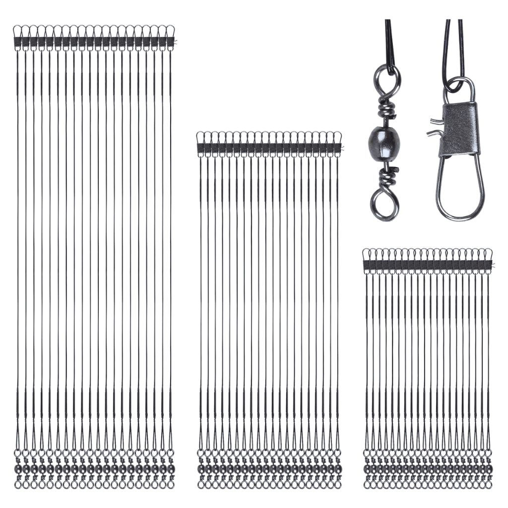 Kit 60 peças Chicote de Pesca Leader Cabo Aço Com Snap Encastoado Girador