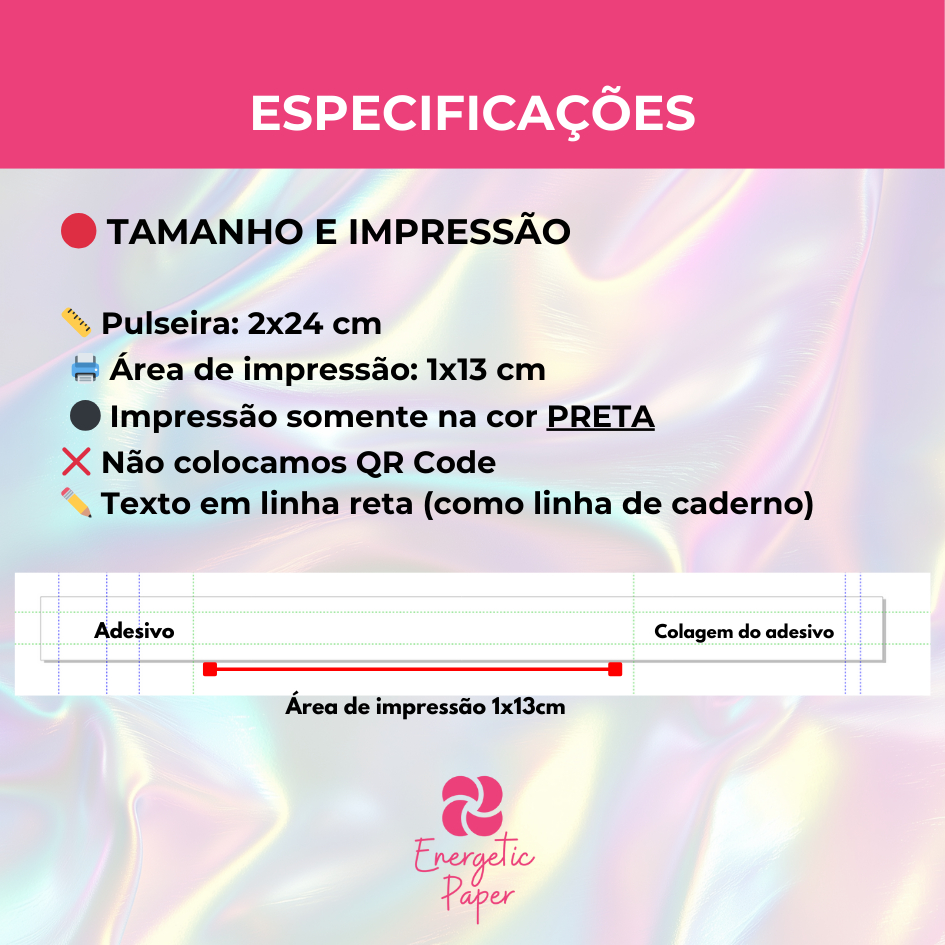 RESUMO – PARA DETALHES DESÇA A TELA ✨ Pulseiras Holográficas Personalizadas ✨ ✅ Resistentes à água, reguláveis, com fecho adesivo – 24x2 cm ✅ As cores são as do anúncio e a arte em preto – tudo na horizontal (igual uma linha de caderno) ✅ Envie os dados abaixo pelo CHAT (bate-papo) após a compra para montar a arte da pulseira: a) o que vai escrito b) imagem e o tema da festa ou evento c) seu número para avisar quando estiver pronto. ✅ Responda sempre ao CHAT até aprovar a arte ✅Caso não responda será enviado sem personalizar ou a última arte feita ⚠️ Não colocamos QR Code ________________________________________ ✨ Pulseiras Holográficas Personalizadas para Eventos Destaque-se com pulseiras resistentes, criativas e cheias de brilho! Nosso diferencial: atendimento rápido + artes exclusivas. ________________________________________ 📦 O QUE VOCÊ RECEBE • Kit com pulseiras holográficas na cor escolhida • Arte em preto (não fazemos colorido) • Não brilham no escuro, mas refletem a luz • Resistentes à água • Fecho de papel adesivo • Medida: 24 x 2 cm • Cores disponíveis: rosa, azul, dourada, prata, branca, lilás, verde ________________________________________ 🎨 PERSONALIZAÇÃO • Texto + letra escolhida (de forma ou cursiva) • Imagem em preto, horizontal (altura máx. 1 cm) • Letras finas e imagens delicadas aparecem menos no fundo holográfico • Temos designers que montam a arte para você ⚠️ Não fazemos QR Code ________________________________________ 🛒 COMO COMPRAR 1. Escolha a quantidade (mínimo 20, múltiplos de 5) e a cor. 2. Após a compra, entre no chat em até 24h e envie: o Texto + tipo de letra (ex.: divertida, delicada, cursiva) o Figura/tema da festa (em preto e horizontal) o Seu número W (apenas para aviso da arte pronta) ________________________________________ ✅ APROVAÇÃO DA ARTE • A arte é enviada geralmente à noite pelo chat. • Responda: APROVADA ou peça pequenas alterações. • Confira bem antes de aprovar → não fazemos ajustes depois. • Se não responder, o pedido segue sem personalização ou com letra padrão. ________________________________________ 🚚 PRODUÇÃO E PRAZO • Produção: até 2 dias após aprovação da arte • Envio: próximo dia útil após aprovação • Quanto antes aprovar mais rápido será postado • Consulte o prazo no botão FRETE do anúncio ⚠️ Se não enviar os dados no prazo → pulseiras seguem lisas, sem personalização ________________________________________ 🌟 Garanta já seu kit! 📩 Tire dúvidas pelo chat antes de comprar. ✅ Compre com antecedência e em quantidade maior do que precisa. Raquel Energetic_paper
