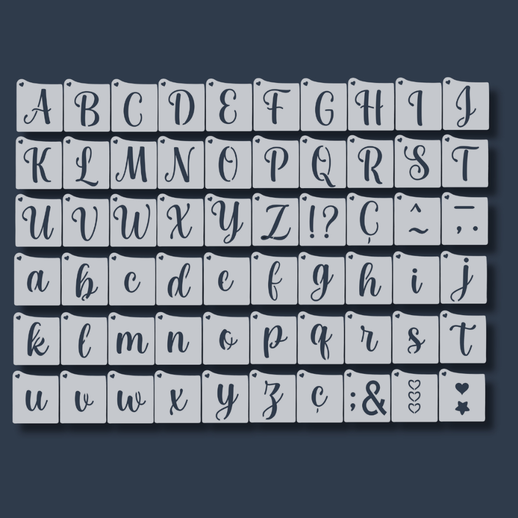 Kit 60 Stencil Molde Alfabeto Abecedário Letras Maiúsculas e Minúsculas para Pintura em Tecido, Mdf