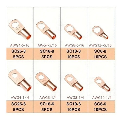 Kit 60 Terminal Conector Olhal De Compressão 6 10 16 25 mm Terminais em Cobre