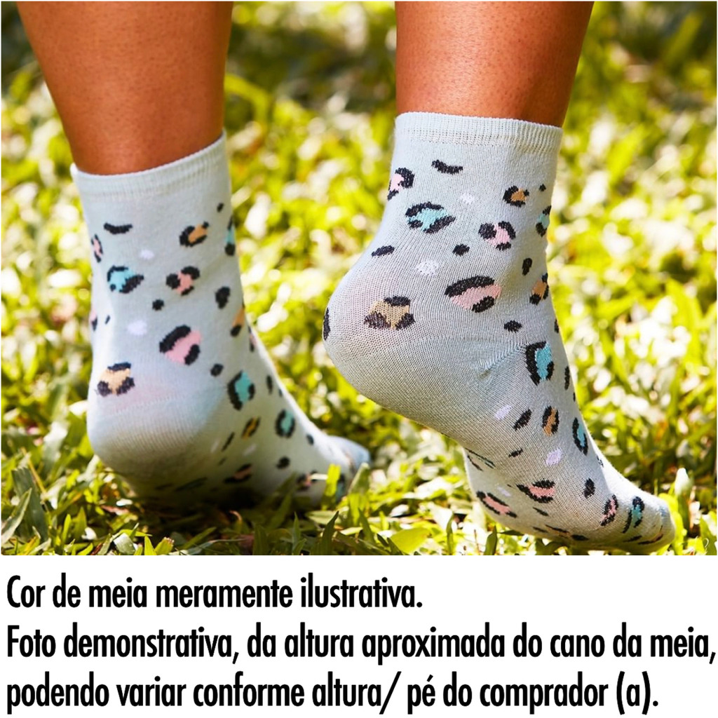 Kit 6X Pares Meias Femininas Cano Médio Estampas Selene