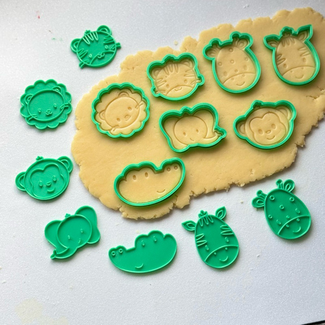 Cortadores para Biscoitos Artigo: Safari Tamanho: Aprox 6Cm Esse Anuncio Contem: ( kit Safari) 14 peças 7 cortadores 7 carimbos *A COR PODE VARIAR CONFORME DISPONIBILIDADE * Cuidados: 1 - Cuide da higiene dos seus cortadores, a impressão 3d é feita por camadas, portanto sujeira pode acumular entre uma camada e outra. Use uma escova e detergente neutro para limpeza logo após o uso. 2 - Armazene seus cortadores protegidos do sol e nunca os leve a fornos, micro-ondas ou lave com água quente, pois podem deformar em temperaturas a partir de 40ºC. 3 - Não utilize força demais para marcar a massa, 5kgf é mais que suficiente, é o mesmo que um aperto de mãos.