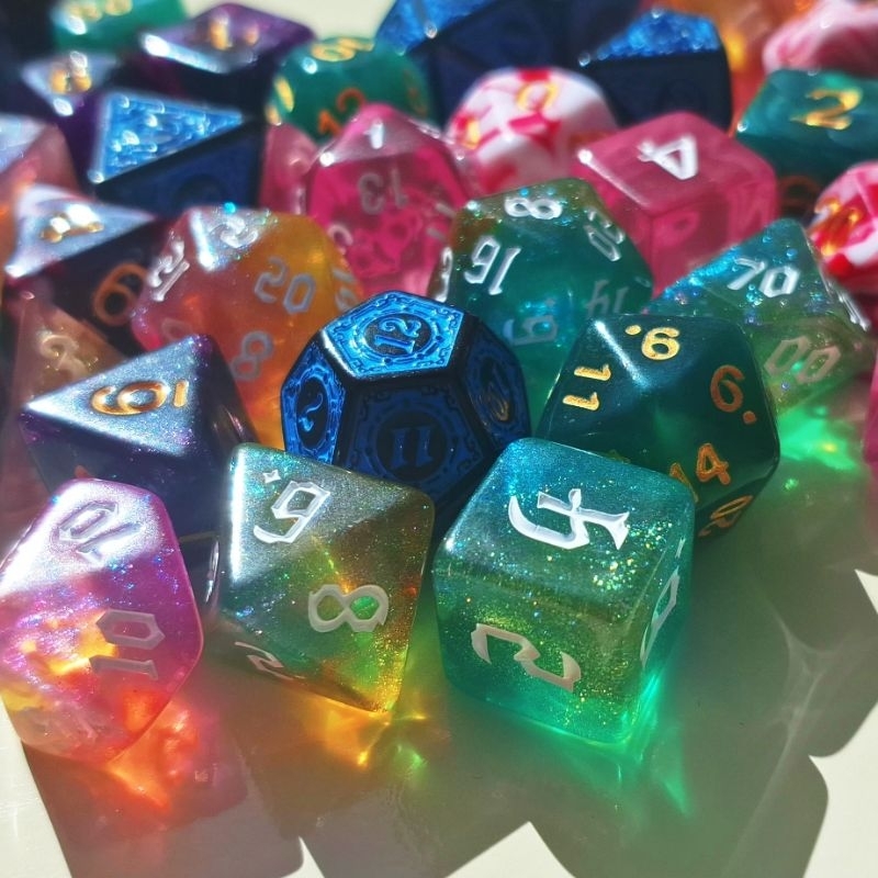 Conjuntos de 7 Dados Poliédricos feitos em resina de cores diversas e vibrantes ✨️ Cada kit inclui todos os dados essenciais para o seu RPG (D4, D6, D8, D10, D% , D12 e D20). Perfeitos para qualquer sistema! ✅ Qualidade e Cores Únicas. ✅ Pronta entrega. ✅️Alta qualidade. Fotos ilustrativas, os dados podem sofrer variação de tonalidade por conta do processo de fabricação.