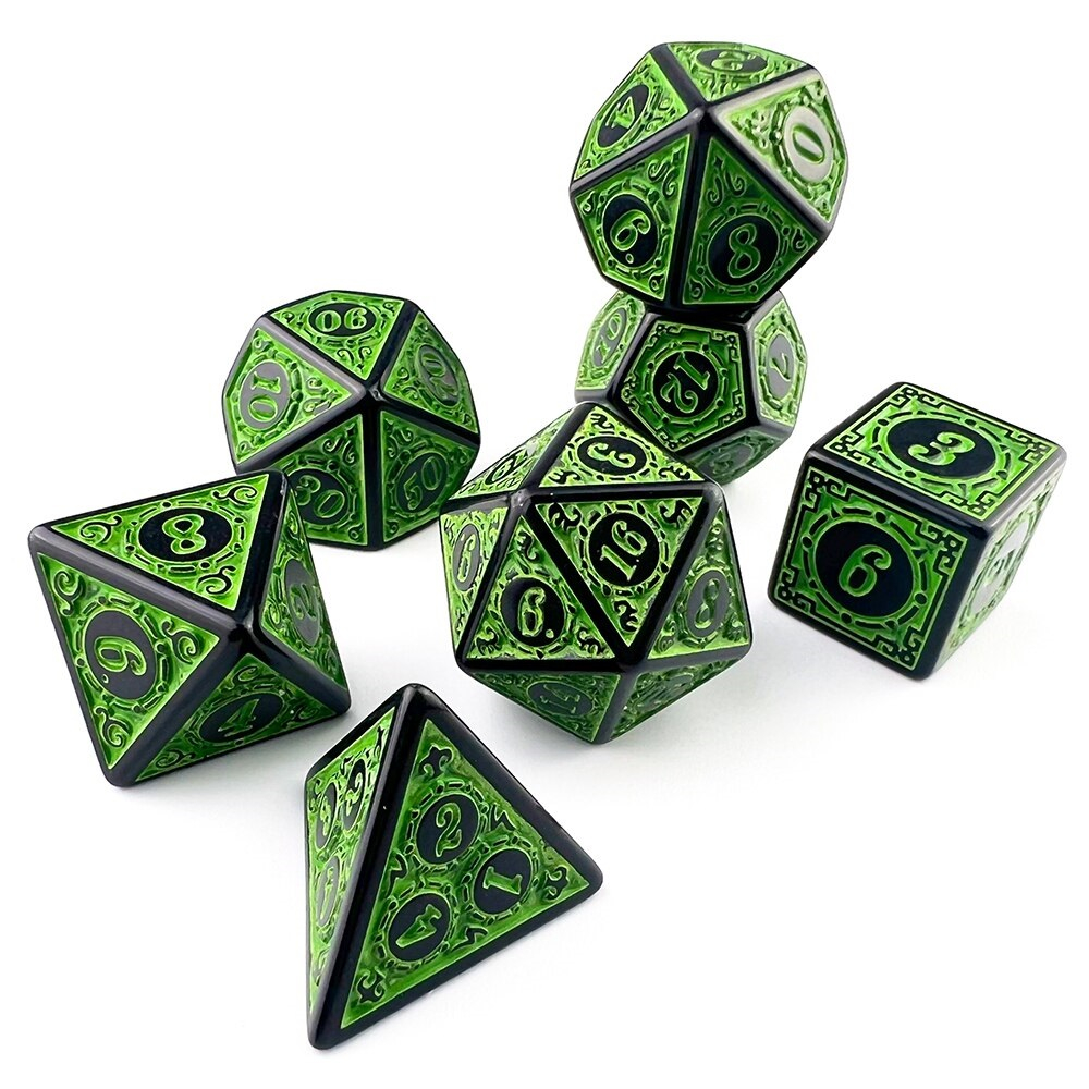 Kit 7 Dados Rúnicos RPG Poliédricos - D&D, Tormenta20, Cthulhu, Pathfinder - D4 a D20 - Runas
