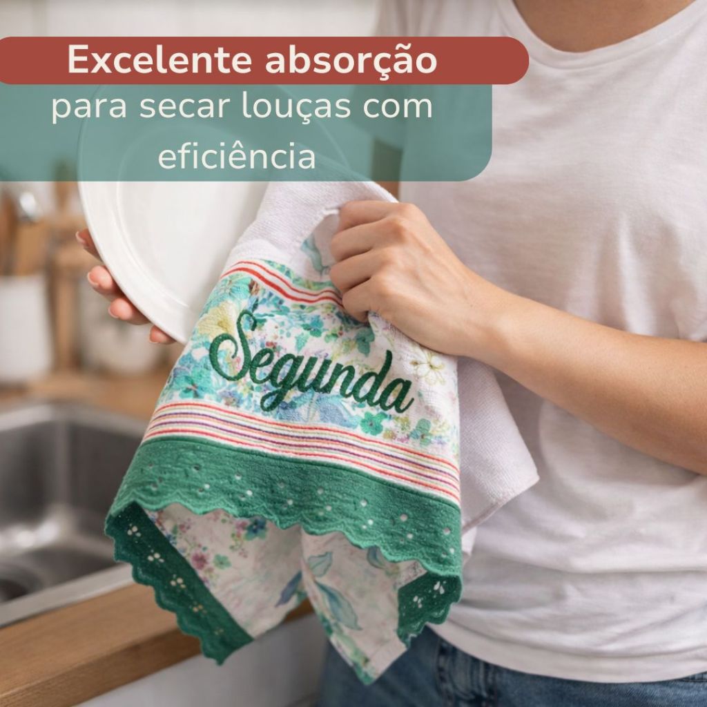 | Kit 7 ou 14 Panos de Prato Semaninha Bordados com Aplique Organizaç... este produto | R$ 41,90 | 51% | 3.0/5 | — |