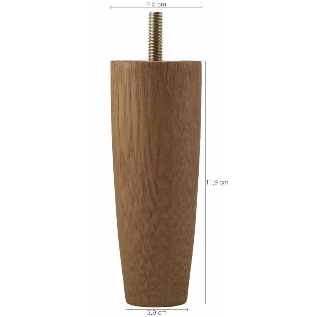 Qualidade, praticidade e resistência. Garantia: 90 Dias / Peso: 910g / Cor: Mel / Ref: 79DM09X7 Dimensões: 2,9cm (C) x 4,5cm (L) x 11,9cm (A) Cuidados: Não lavar com materiais abrasivos. Conteúdo: 7 Pés em Madeira. Material: - Madeira de Eucalipto com Umidade de 15% : Madeira 100% reflorestada. - Prisioneiro de aço zincado em amarelo trifásico; - Tinta PU a Base de Solventes. - Feltro Emborrachado. O conjunto é ideal para cama de Casal e possui rosca padrão, que se adapta a qualquer tipo de cama box. Os 7 pés possuem feltro para serem fixados na base, protegendo e evitando arranhar e riscar seu piso ou laminado. Podendo ser utilizado em hotéis ou até mesmo na sua casa, permitindo maior espaço em baixo da cama para armazenar objetos ou para quem deseja uma cama mais alta.
