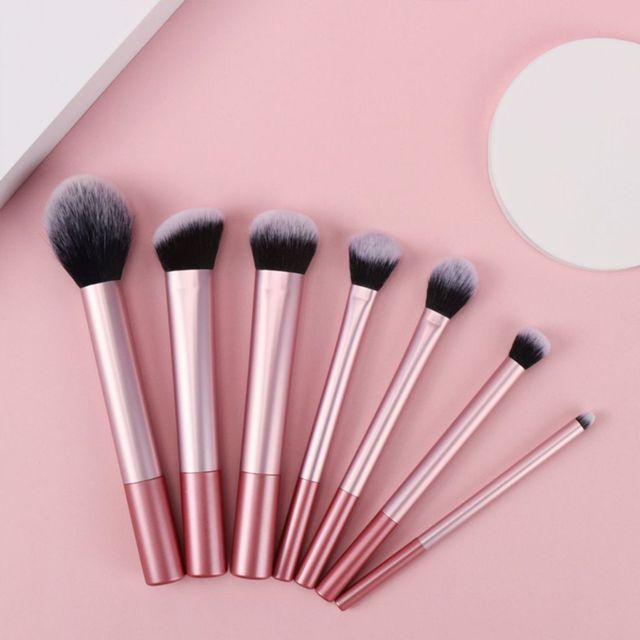 Kit 7 Pincéis de Maquiagem profissional 024-142 ROSA