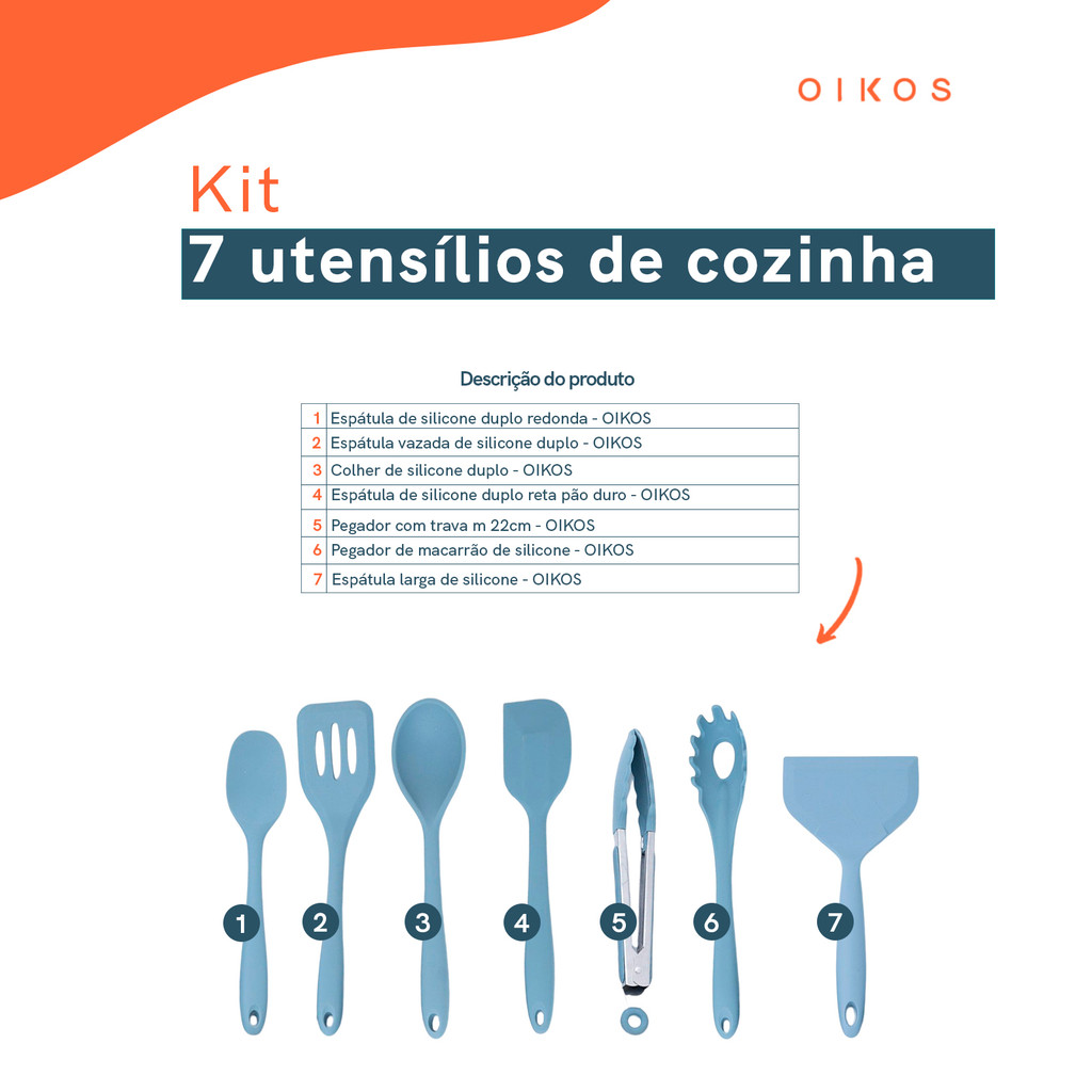 Kit 7 utensílios de cozinha de silicone completo multiuso - Oikos