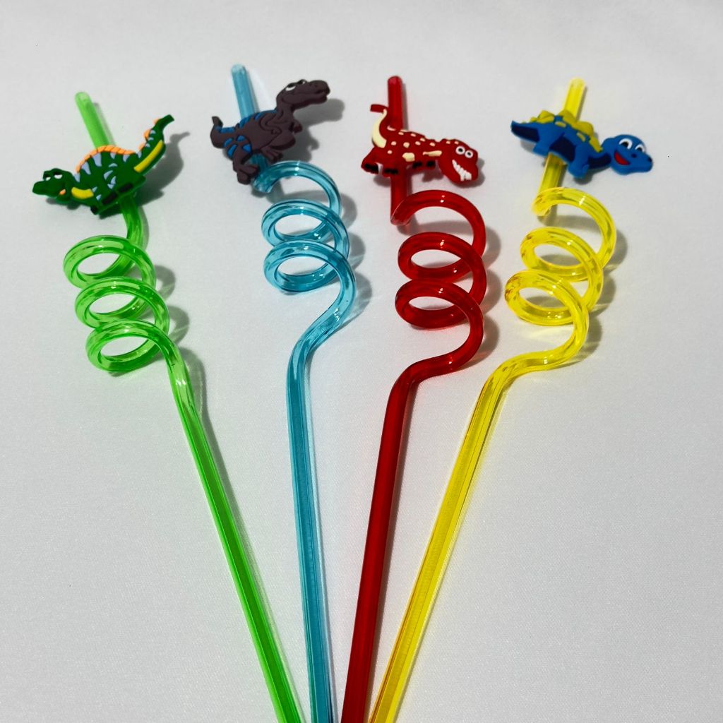 Kit 8/12/20 Canudos de Dinossauro Reutilizável Espiral Decoração Festa