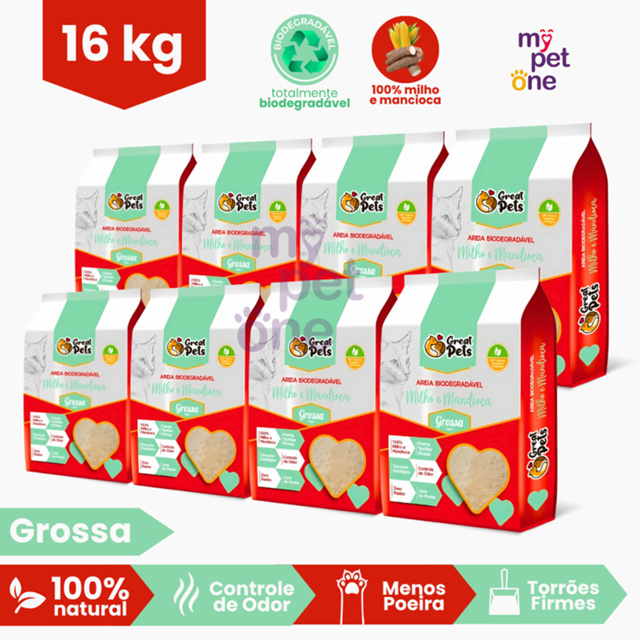 Kit 8 Areia Biodegradável Grossa Great Pets para Gatos - 2 Kg