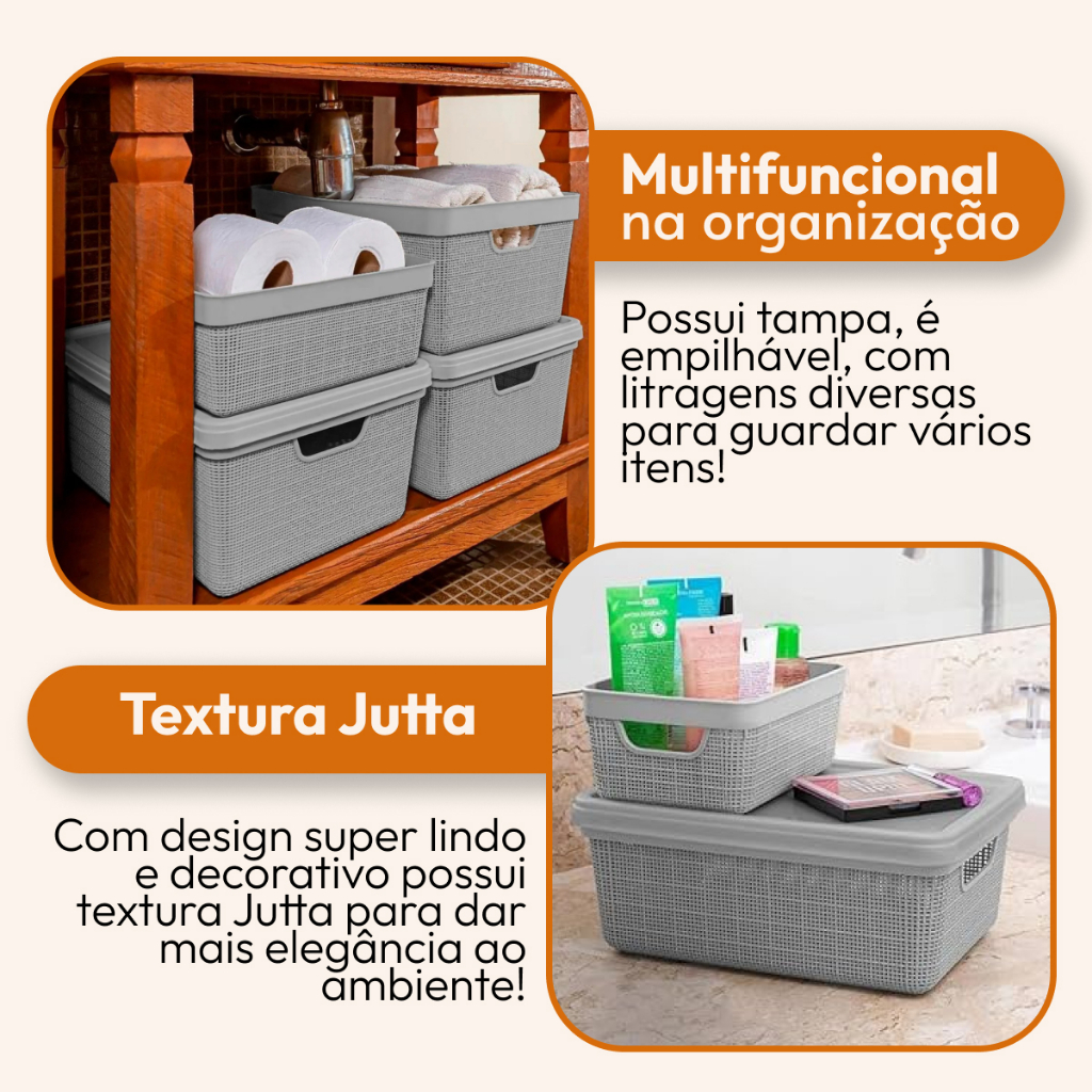 Kit 8 Caixas Organizadoras com Tampa Cesto Grande em Plástico Resistente 22 L 5 L 1,8 L