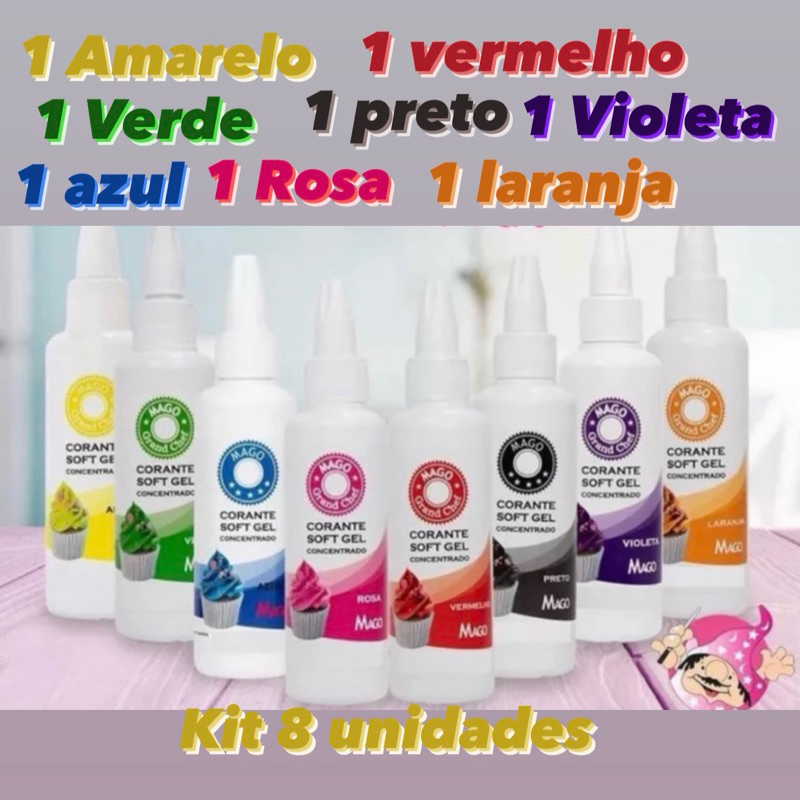 KIT 8 CORANTE SOFT GEL MAGO 15g CORES PRIMÁRIAS OFF