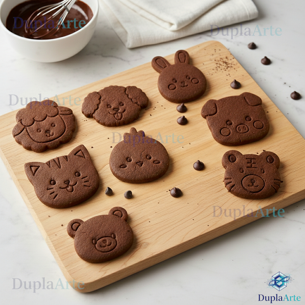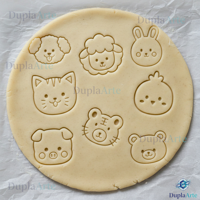 Deixe seus biscoitos e criações muito mais divertidos e profissionais! Este Kit com 8 Cortadores e Marcadores 3D foi desenvolvido para facilitar o trabalho de quem ama confeitaria e artesanato, entregando desenhos bem definidos e acabamento impecável em cada uso. O modelo 2 em 1 (corta + marca) permite criar o formato e os detalhes do rostinho do animal em um único passo, economizando tempo e garantindo um resultado uniforme. 🧸 CONTEÚDO DO KIT Você recebe 08 cortadores diferentes, com os personagens mais queridos do tema Fazendinha/Safari: 🐶 Cachorro 🐱 Gato 🐑 Ovelha 🐷 Porco 🐯 Tigre 🐰 Coelho 🐥 Pintinho 🐻 Urso 📐 INFORMAÇÕES DO PRODUTO Dimensão: Cerca de 5.5 cm cada peça Material: PLA de alta resistência, seguro e atóxico Fabricação: Impressão 3D Função: Cortador com marcador integrado Cores: Variadas (envio conforme disponibilidade) 🌟 VANTAGENS QUE FAZEM A DIFERENÇA ✔ Criações rápidas e padronizadas ✔ Ótimo para biscoitos, fondant, pasta americana, biscuit, massinha e artesanato ✔ Ideal para lembrancinhas e decoração de festas infantis ✔ Fácil de usar, mesmo sem experiência ✔ Tema muito procurado para aniversários e chás de bebê 🎈 Perfeito para quem busca: Mais produtividade na confeitaria Produtos com visual encantador Ferramentas duráveis e reutilizáveis