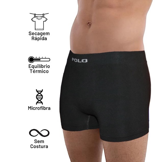 Kit 8 Cuecas Polo Boxer Microfibra Preto - POLO STAR