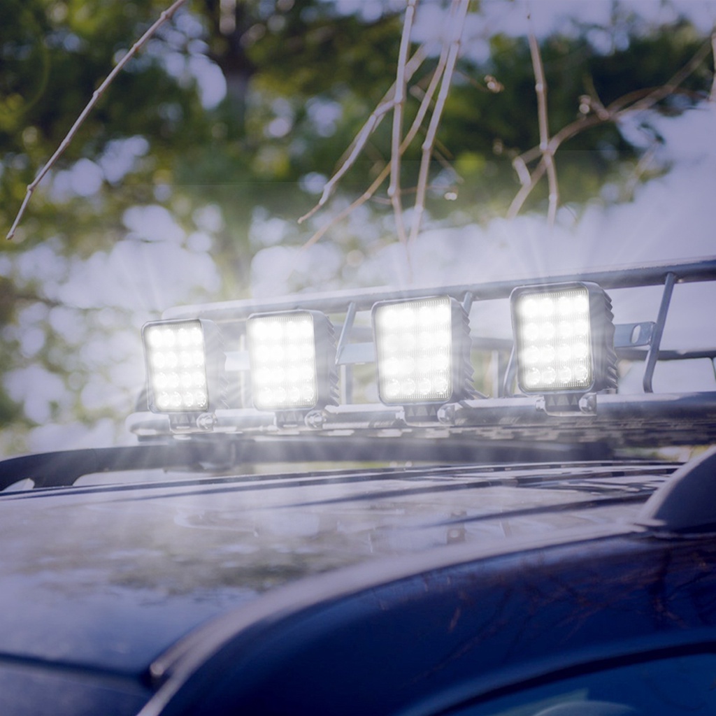 Kit 8 Farol de LED Quadrado 16 LED Bi-volt 10-30V 48W Branco