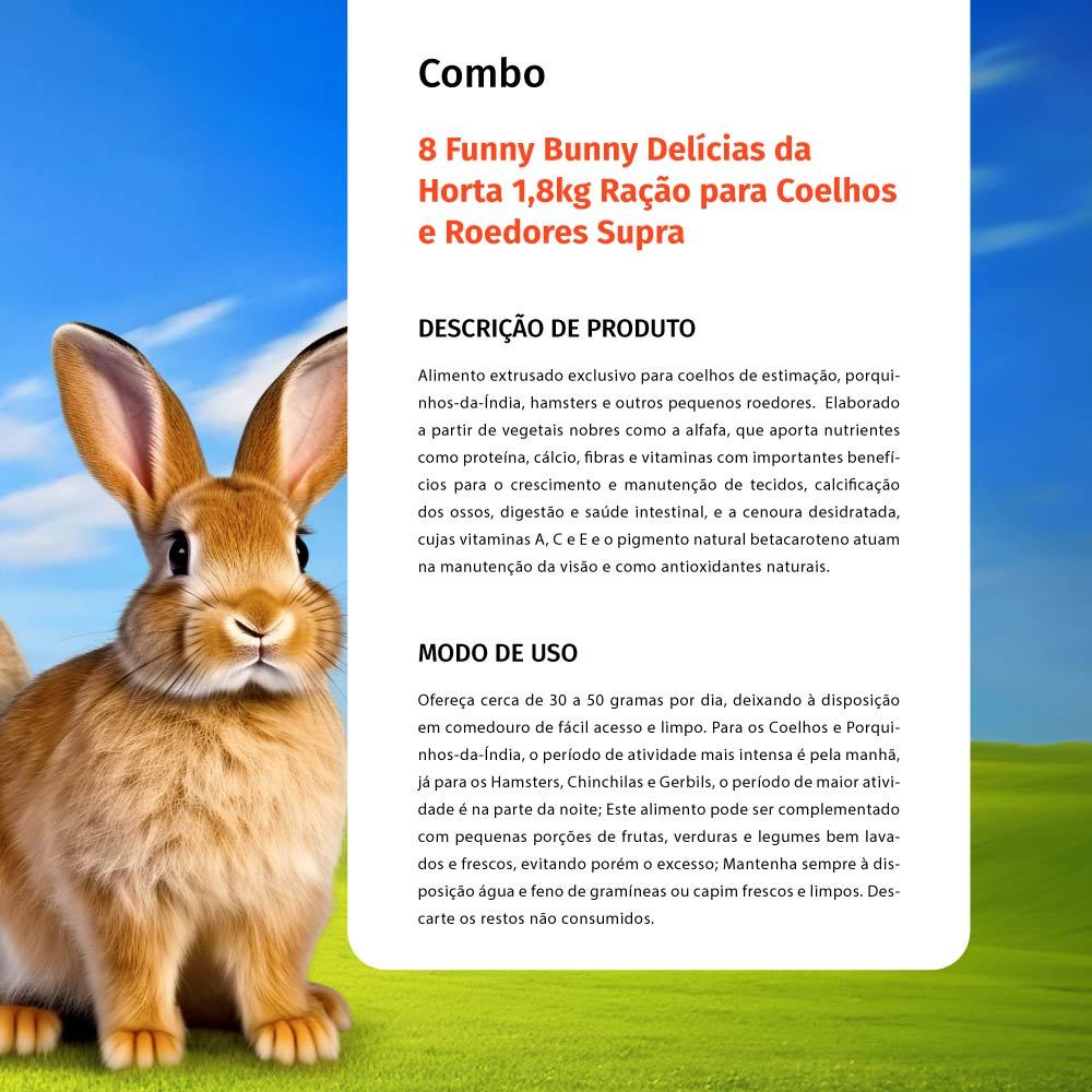 Kit 8 Funny Bunny Delícias da Horta 1,8kg Ração para Coelhos e Roedores Supra